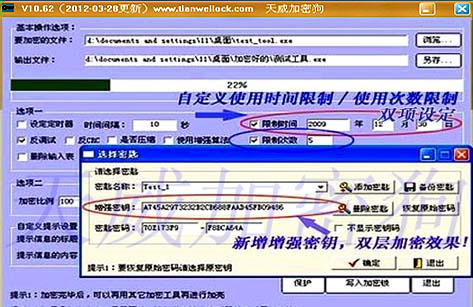 以往的加密产品,试用期功能是通过软件完成的,加密强度不高,容易破解。而时钟狗内置时间模块,时间控制是通过硬件完成的,具有很高加密强度。狗的时钟时间 可以通过工具软件进行读写,接口函数具有读时间功能。开发商程序可以通过获得狗时间,以及结合使用扩展变换来严格限制软件的使用次数和使用时间。