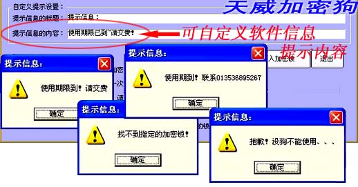 扩 展变换(checkDogEx())是指狗对开发者指定的字符串按一定的算法进行变换,返回一个变换结果。该算法是确定的、独立的、不可逆的、不可预知 的。开发商可以利用变换结果鉴别对应狗是否存在,也可以把变换结果当成一个常数参与到软件计算中去。利用软件特征值和扩展变换结果,开发商能够控制软件的 试用期和使用次数,并且能够分别对每一个最终用户实现不同的控制。